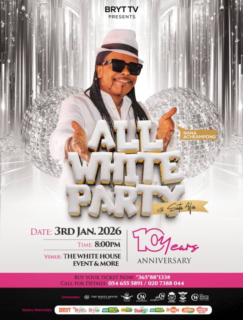 Scheduled for January 3, 2026, the All-White Party officially launches a nationwide series of events celebrating her decade-long impact on Ghana’s music scene. Tickets are available via 36588*133#. For enquiries, sponsorship opportunities, and table reservations, patrons can contact 054 655 5891 or 020 738 8044.